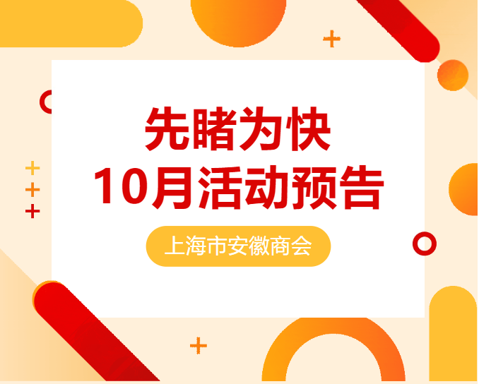 十月,天高云淡,金桂馥郁,正是收获与展望的美好时节。上海市安徽商会将以一系列多样活动与商会家人相伴:从出海交流的广阔前景,到政会银企的务实探讨;从亲子挑战的温情乐趣,到体育赛事的活力迸发……我们以乡...